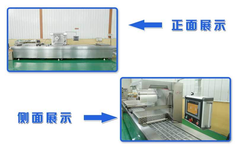 拉伸膜真空包裝機不需要廠家提前定制袋子,是膜通過加熱,經(jīng)過成型模具利用上吹下吸的原理,形成袋子的形狀,進行物料填充,完成抽真空、封口的工作;通過拉伸膜真空包裝機的工作原理我們就可以得出,拉伸膜真空包裝機只需要人工裝料就可以,需要3-4個工人操作,進行物料填充工作,產(chǎn)能可達到9000袋左右,但是由于拉伸膜是通過膜加熱、變軟形成袋子的形狀,不能保證圖案的完好,包裝帶骨頭的產(chǎn)品也會影響包裝效果,其拉伸膜真空包裝機的設(shè)備長度在6米左右,占地面積較大。